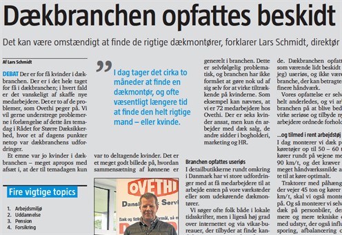 Vores CFO, Lars Schmidt, har skrevet et indlæg i Motormagasinet om den svære rekruttering i dækbranchen.